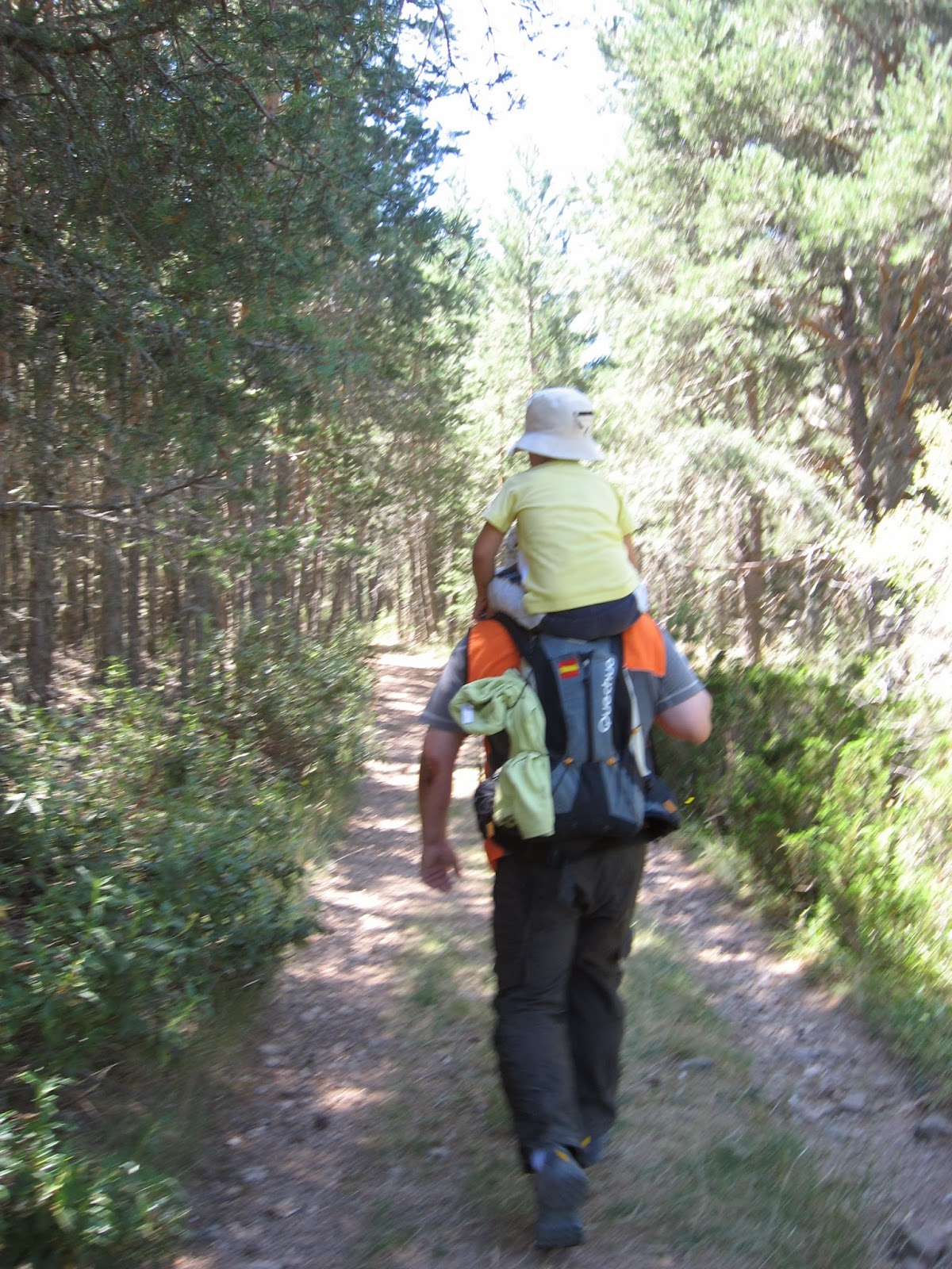 Ahora seguimos entre los pinos, por una bonita senda señalizada con balizas de color rojo. Sin dejarla en unos minutos llegaremos a las corralizas y la carretera.